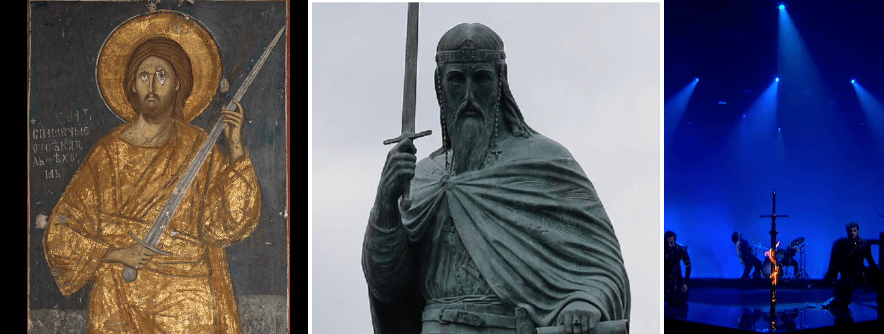Чујем православна џамахирија има коментаре како крст не сме да се пали. Драги моји то није крст, већ реквизит. Мука ми је од претераног чистунштва. Понекад Бог уме да се укаже на најмање очекиваним местима. Шта то повезује крст и мач? Постоји ли та веза?
