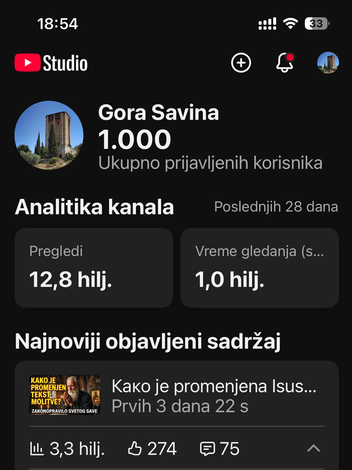 За мање од месец дана дошли смо до 1000 пратилаца на Јутубе каналу ”Гора Савина”. Хвала свима што ме подржавате.