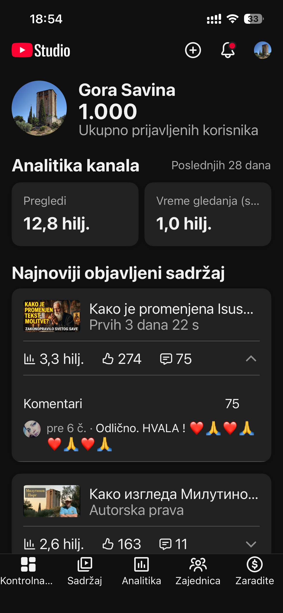 За мање од месец дана дошли смо до 1000 пратилаца на Јутубе каналу ”Гора Савина”. Хвала свима што ме подржавате.