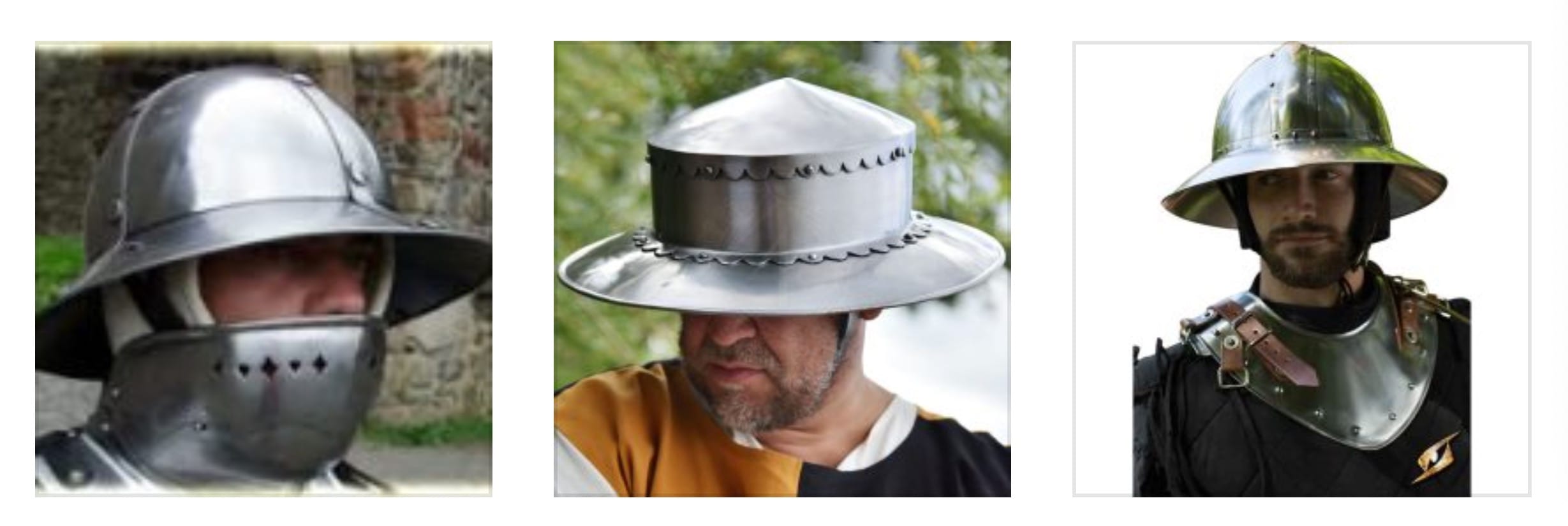 У средњем веку ова врста капе је била уобичајна за тешку пешадију и копљанике како би се заштитили од кише стрела и камења са виших позиција.