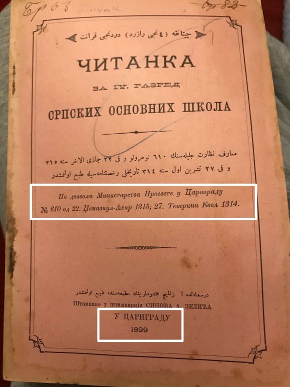 “… čitanku srpskog jezika za 4. razred koji se koristio u Srbiji kad je još bila pod turcima. Maleni udžbenik iz 1899. godine …”