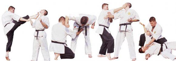 You should always be aware of close distance. Attacker is usually always stronger then you and wrestling is his territory. In shorin ryu, you always avoid attacker’s attempts to grab you. However, sometimes you don’t have a choice. If this is a case, then you should try to grab attacker’s genitals so that he has to let you go.