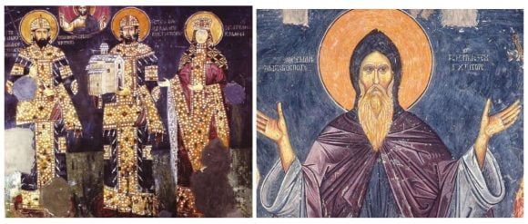 И заиста на фрескама наших владара можемо наћи боју пурпура – љубичасту, која је била царско знамење, тј. потврда да је породица Немањића повезана царском крви са породицом Палеолога. Што је означено титулом Стефанос.