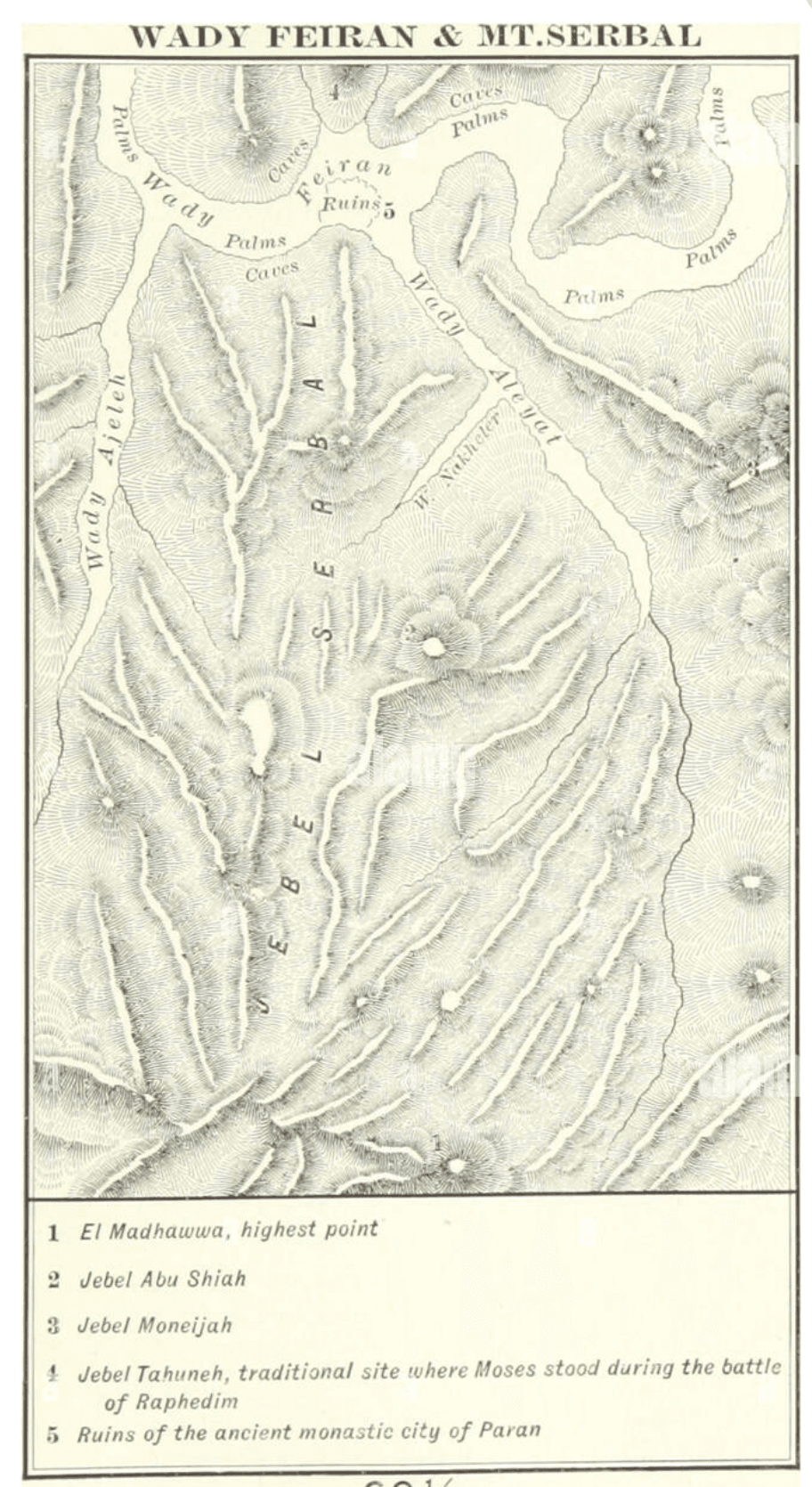 Library of Congress: фото-запис „To Sinai via the desert. Wady Feiran and Jebel Serbal“ (опис локације, топоними, историјске белешке). The Library of Congress