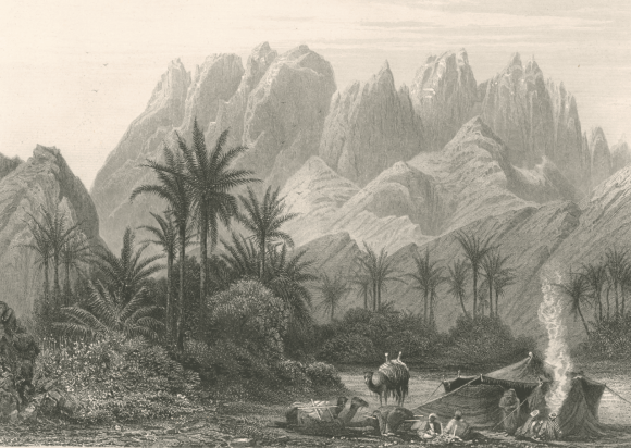 Library of Congress: „Mount Serbál, from the Wádee Feyrán / Frith“ (историјска фотографија, 19. век). The Library of Congress