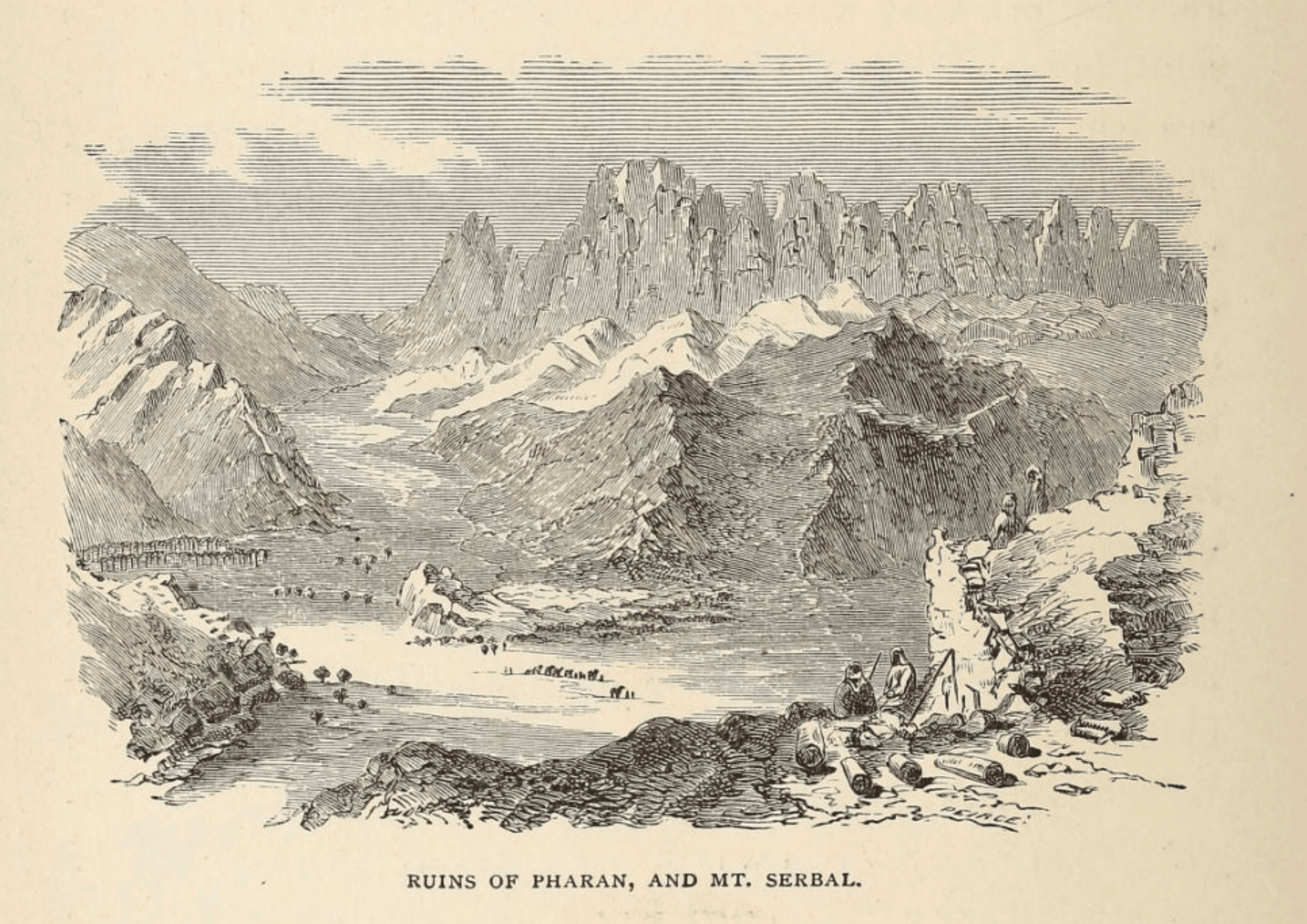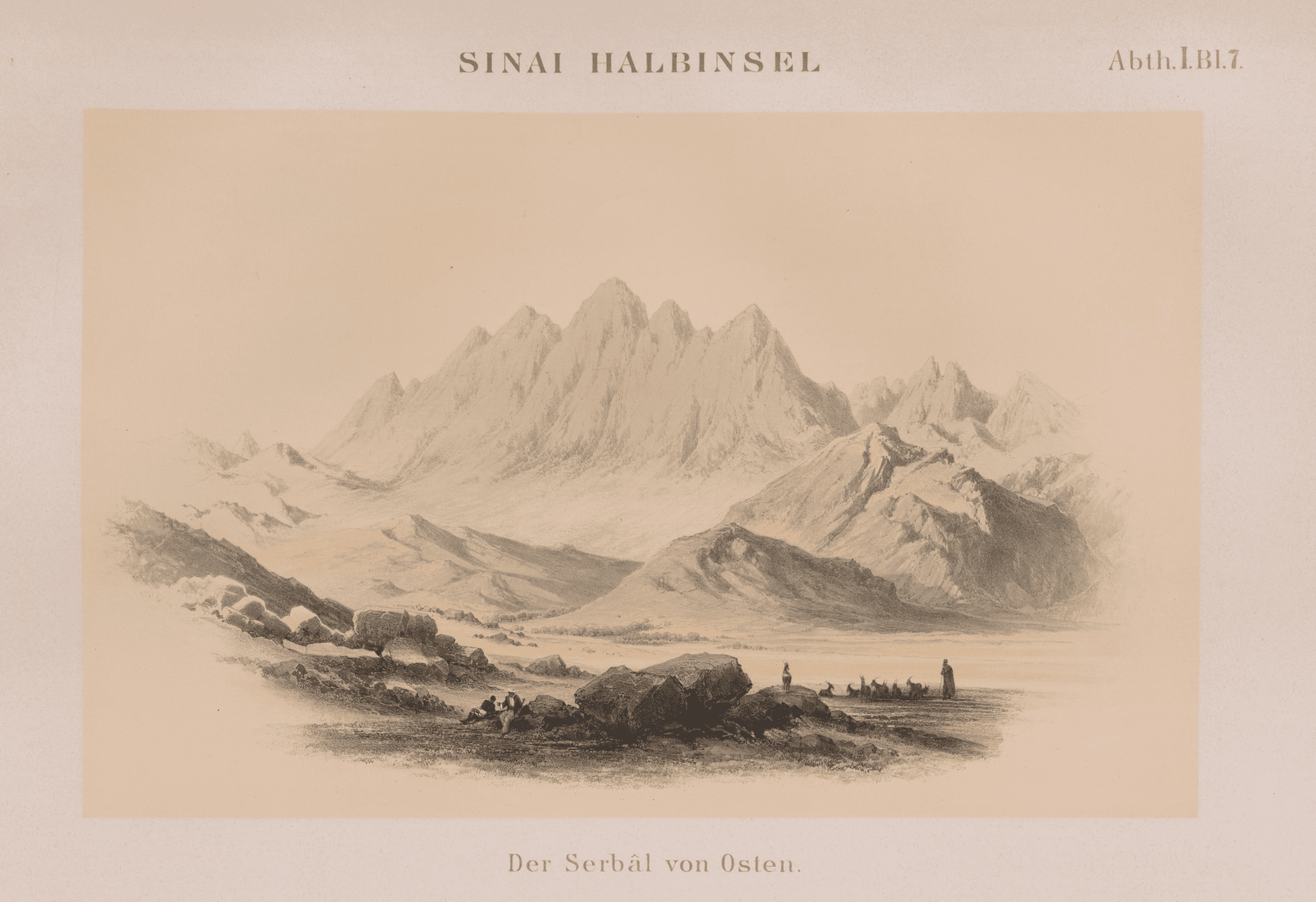 Још једна слика планине Сербал из једне немачке књиге. Dorot Jewish Division, The New York Public Library. “Mt. Serbál – From Wády Feirán.” The New York Public Library Digital Collections. 1881 – 1884. Lepsius, Richard.