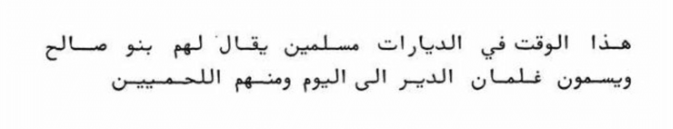 Евтихије даље каже: ”И момци-слуге манастира их слушају; а међу њима има и Лахмијенаца. А монаси су разорили домове слугу пошто су ови прихватили Мухамедову веру, да их нико не би насељавао; због чега и данас пусте стоје.” Затим каже да је после неког времена њихов број порастао јер су се деца рађала и да су за време калифа Мервана (Khalif Abd-el Malek ibn Merwan) сви прешли у муслимане, а онда су између себе заратили и да су многи побијени, неки отишли, а неки остали чији су данас потомци племе Џебалијех.