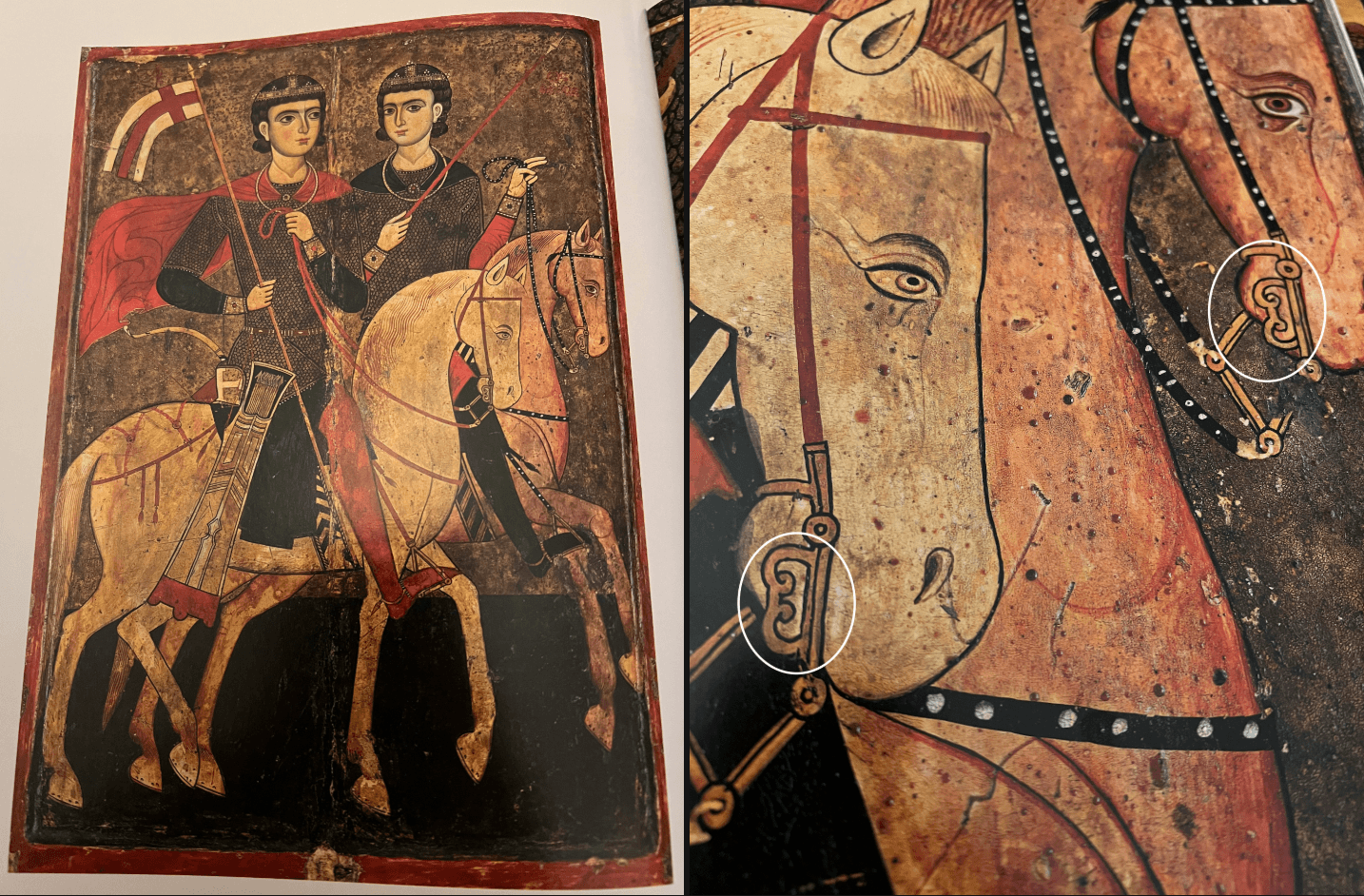 Икона из манастира св. Катарине, св. Срђ и Влах. Обратите пажљу на детаљ на уздама. Срб и Влах? Данас познато као Сергеј и Влахо.