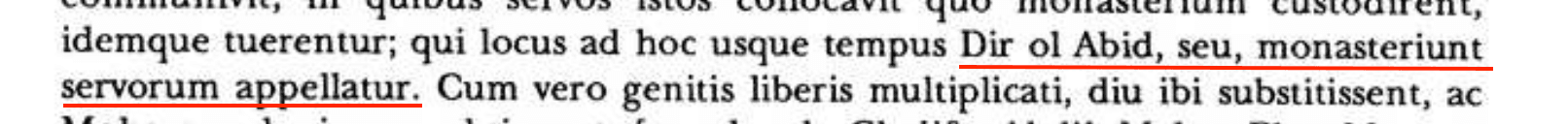 Овде ћу је убацити свој коментар. Наиме назив ”манастир робова” звучи прилично чудно, па сам се упитао да ли је можда дошло до грешке где је латински израз за Србе помешан са изразом за робове јер су у латинском јако слични термини (serbus-servus). Пробах да нађем шта тачно пише али имамо само латински препис а оригинални рукопис је на арапском.