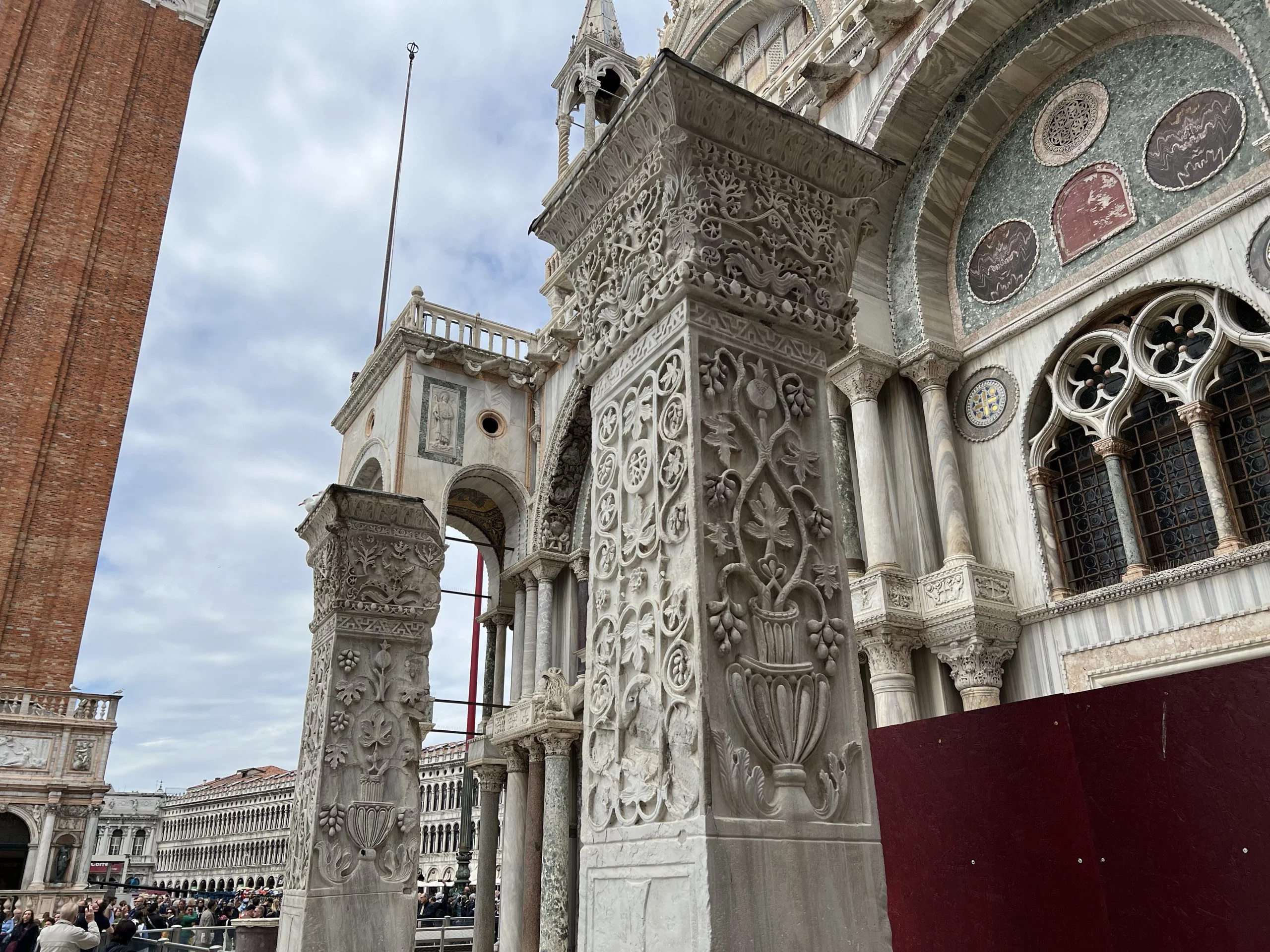 Stolen marbles and stone elements were not only incorporated into the basilica but also into many other churches and palaces throughout Venice. You can encounter them at every turn. The wealth of Constantinople was so immense that this process lasted for decades, with architectural details incorporated throughout Italy and Western Europe.