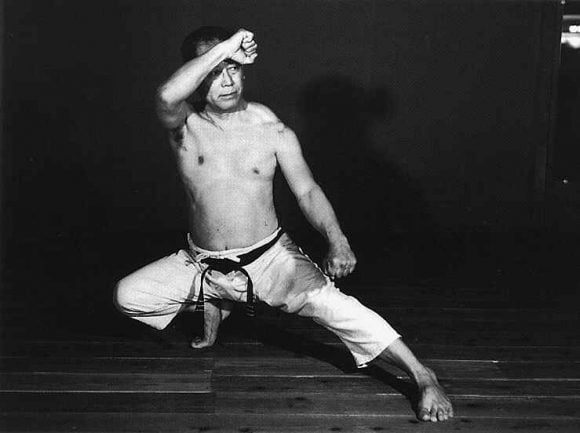 According to Grandmaster Nagamine, Kusanku is most magnificent of all Matsubayashi-ryu kata. It is also the most difficult to perform. The signature stance (use picture of Nagamine) of Kusanku is a perfect example of the athleticism required to perform this kata. The practitioner is also required to go down to the ground (Ota 2) and leap in the air to execute a kick. Furthermore, Kusanku is clearly the longest kata in Matsubayashi-ryu and requires advanced levels of stamina and strength to perform well.