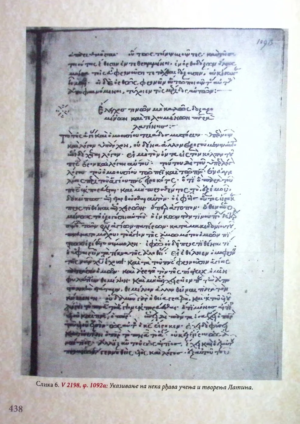 - Svetom obrascu (Simvolu) vere, složenom od jevanđelskih reči, a koji tako jasno govori o Svetom Duhu: „I u Duha Svetoga Gospoda, i životvornog koji od Oca ishodi’, ti (tj. Latini), zlo i pogrešno dodadoše: „I od Sina“. Mislim da zbog skučenosti jezika njihovog, dakle, smatraju da je isto – ishođenje Duha Svetog od Oca i poslanje k nama preko Sina. Varvarski i neznalački smisliše da se poslanje ni po čemu ne razlikuje od ishođenja.