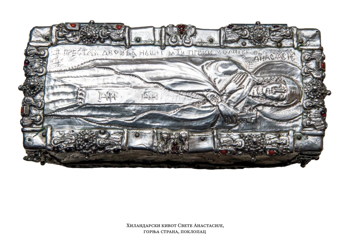 Kivot Svete Anastasije, majke Svetoga Save i Stefana Prvovenčanog je težak oko 250 kg. Izrađen je uglavnom od srebra ali je ugrađena velika količina zlata i dragog kamenja. Svojim rukama otac Voja Bilbija je ovaj kivot radio 2.5 godine. Srebro od koga je kivot izgrađen je srebro despota Stefana Lazarevića iz rudnika u Novom Brdu koje je čuvano u riznici manastira Hilandara i koje je ocu Voji dato za izradu kivota.