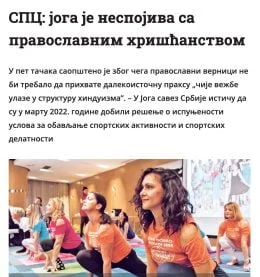 Ovih dana ničim izazvano forsira se u medijima stav crkve prema jogi. Odjednom svi mediji naklapaju o tome da li je joga u skladu sa pravoslavljem ili nije. Read more…